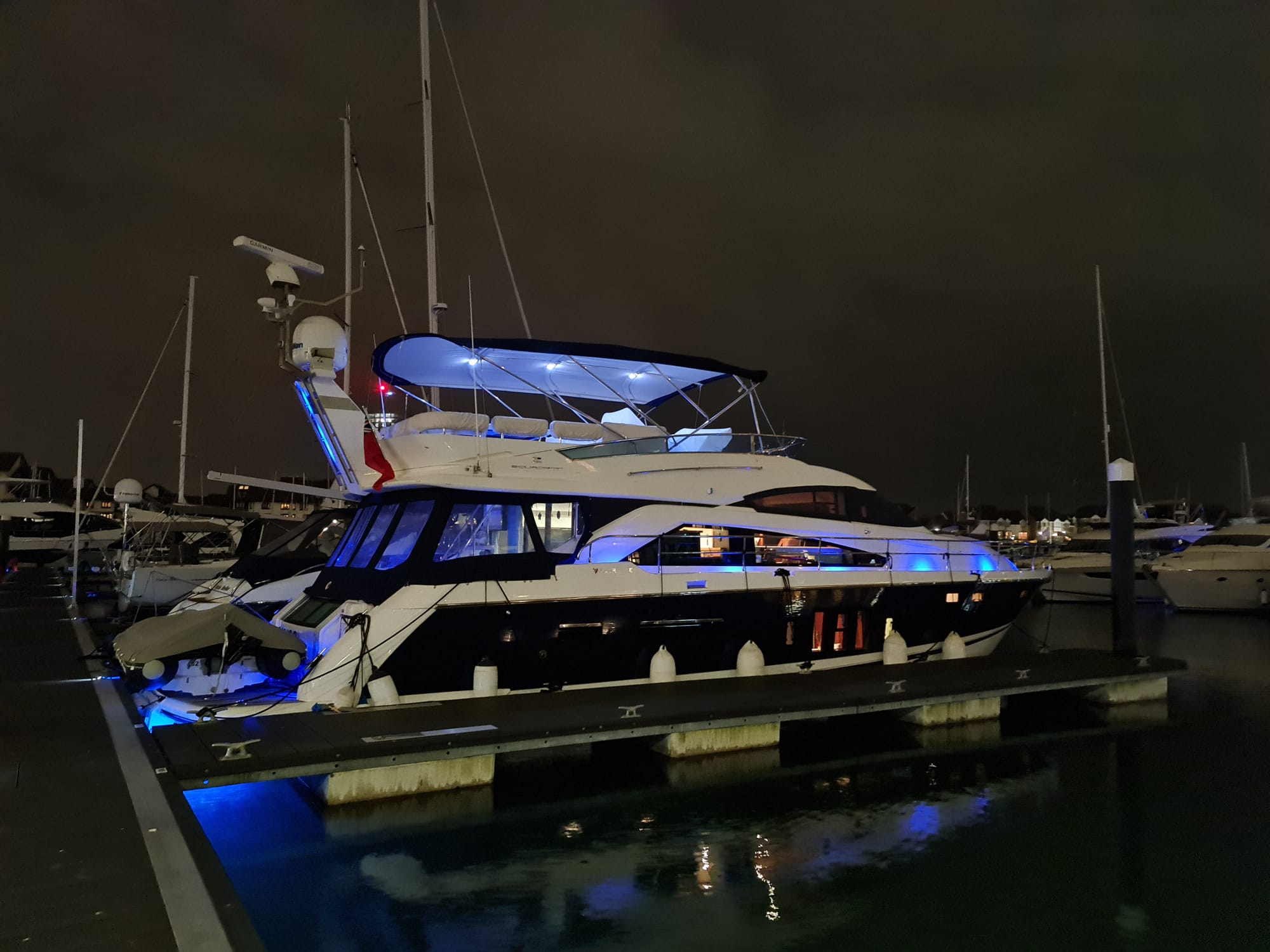 Description: Moored at the prestigious Ocean Village Marina, delivers refined luxury, space, and commanding performance. With expansive flybridge seating and elegant interior styling, she is perfectly suited for cruising Southampton Water, exploring the Hamble River, enjoying the Solent, or embarking on an unforgettable voyage to the Isle of Wight. Ideal for both relaxed coastal cruising and stylish day charters.